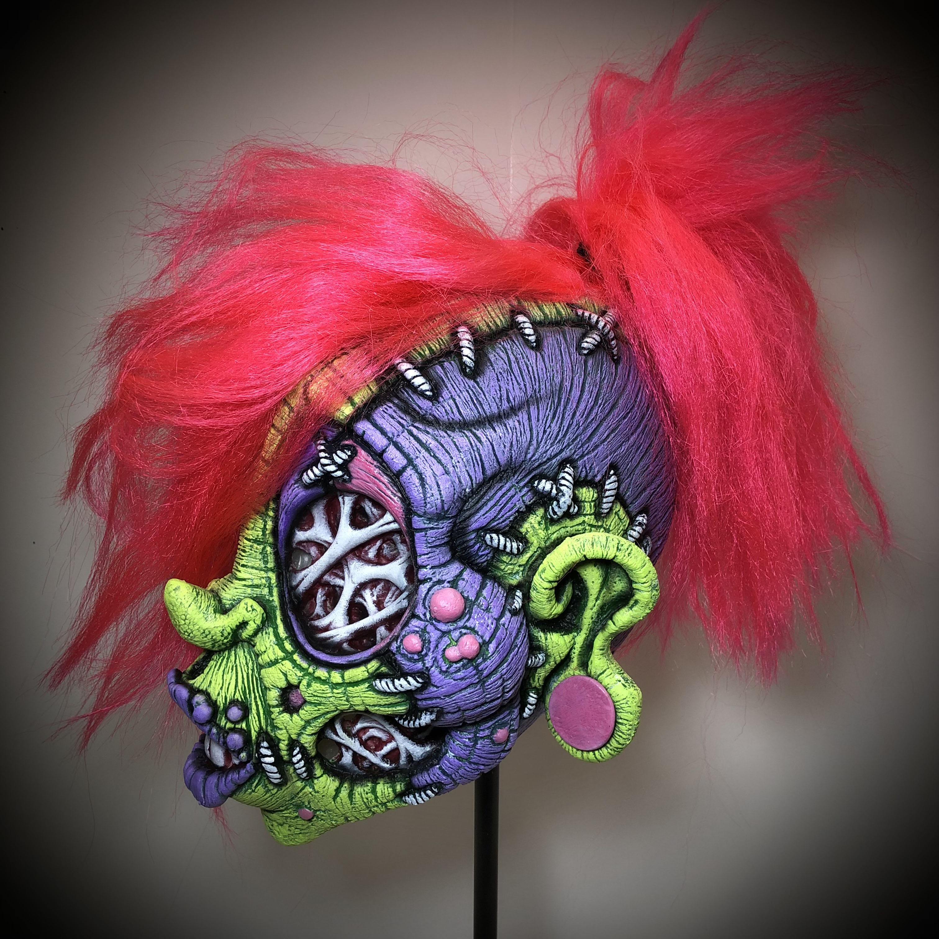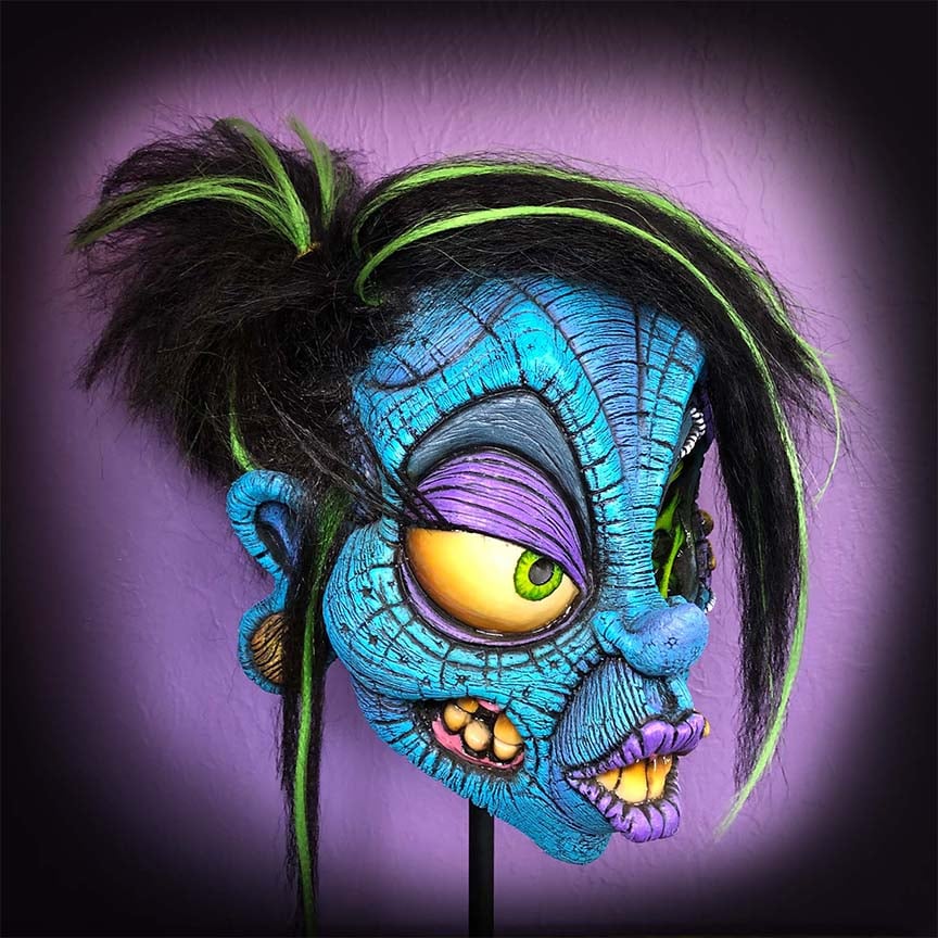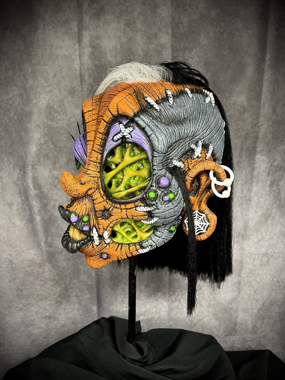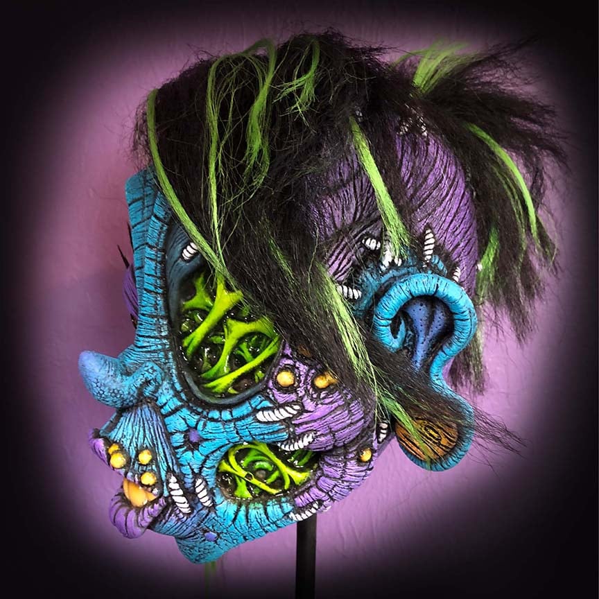 Cousin Candi wearable full head latex masks complete with hand laid hair, resin gauges, epoxied features, made of RD407 latex. Custom paint schemes available no extra charge just specify in your notes your desired paint scheme. Please allow 2-4 weeks for production.