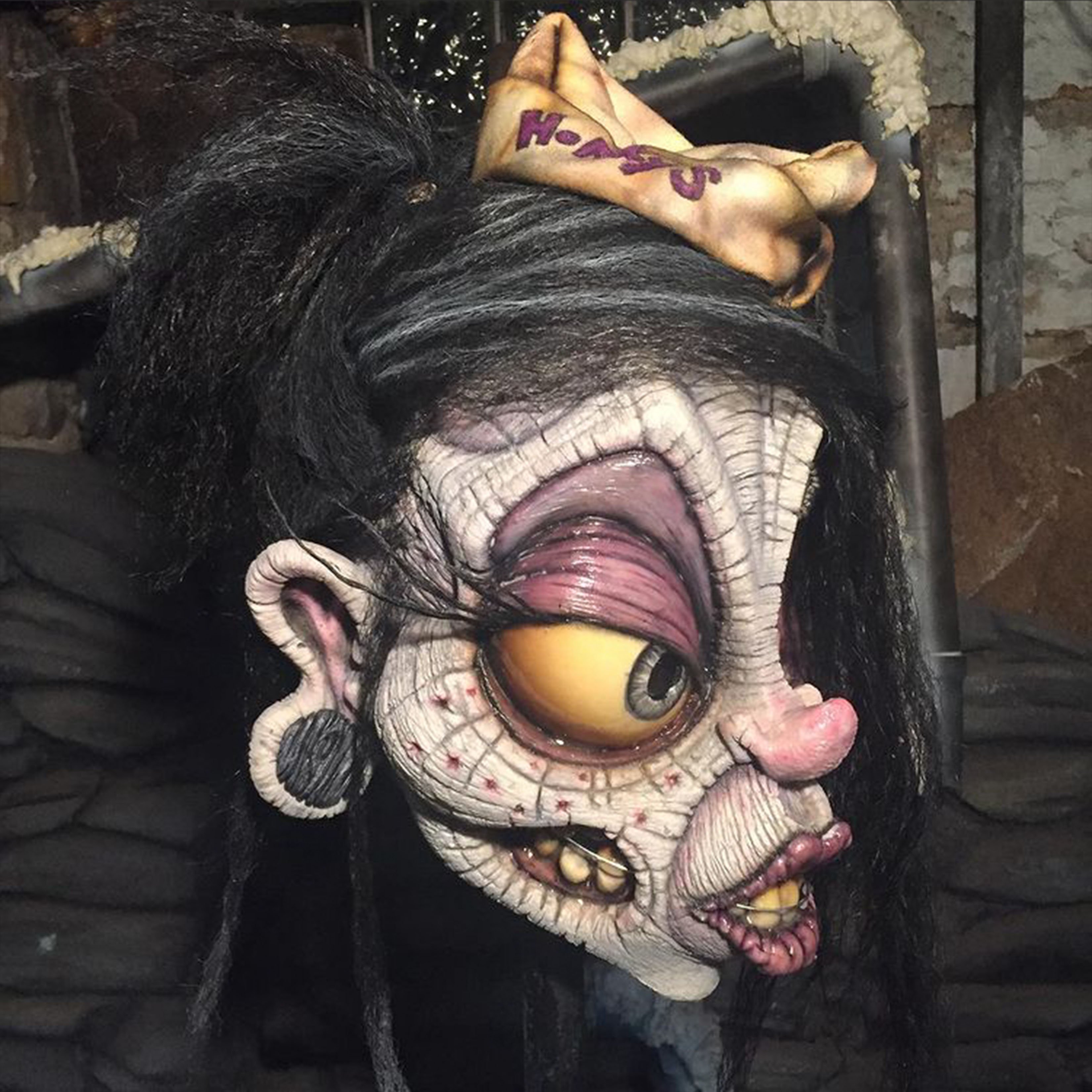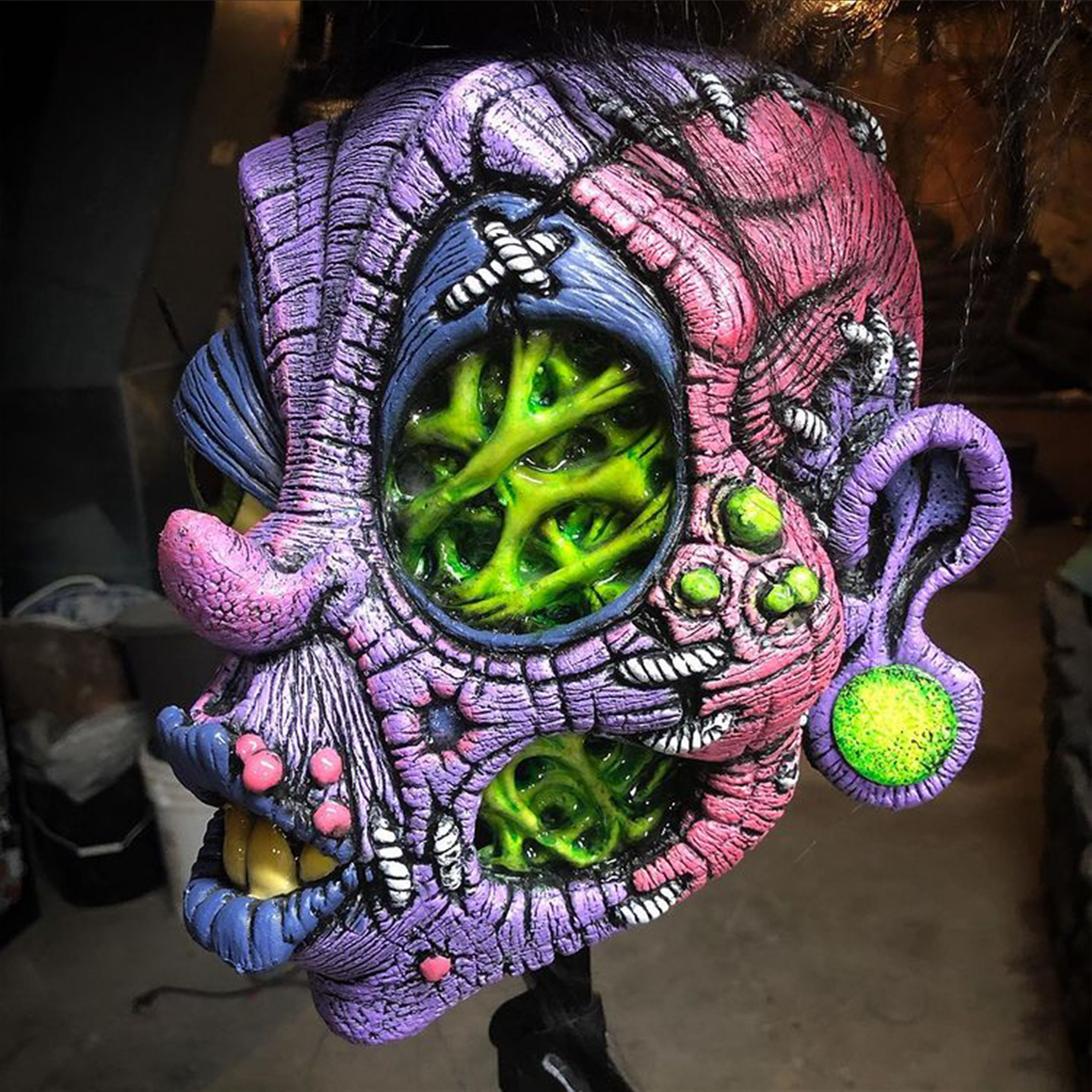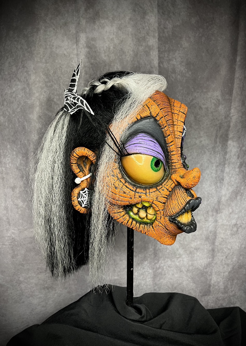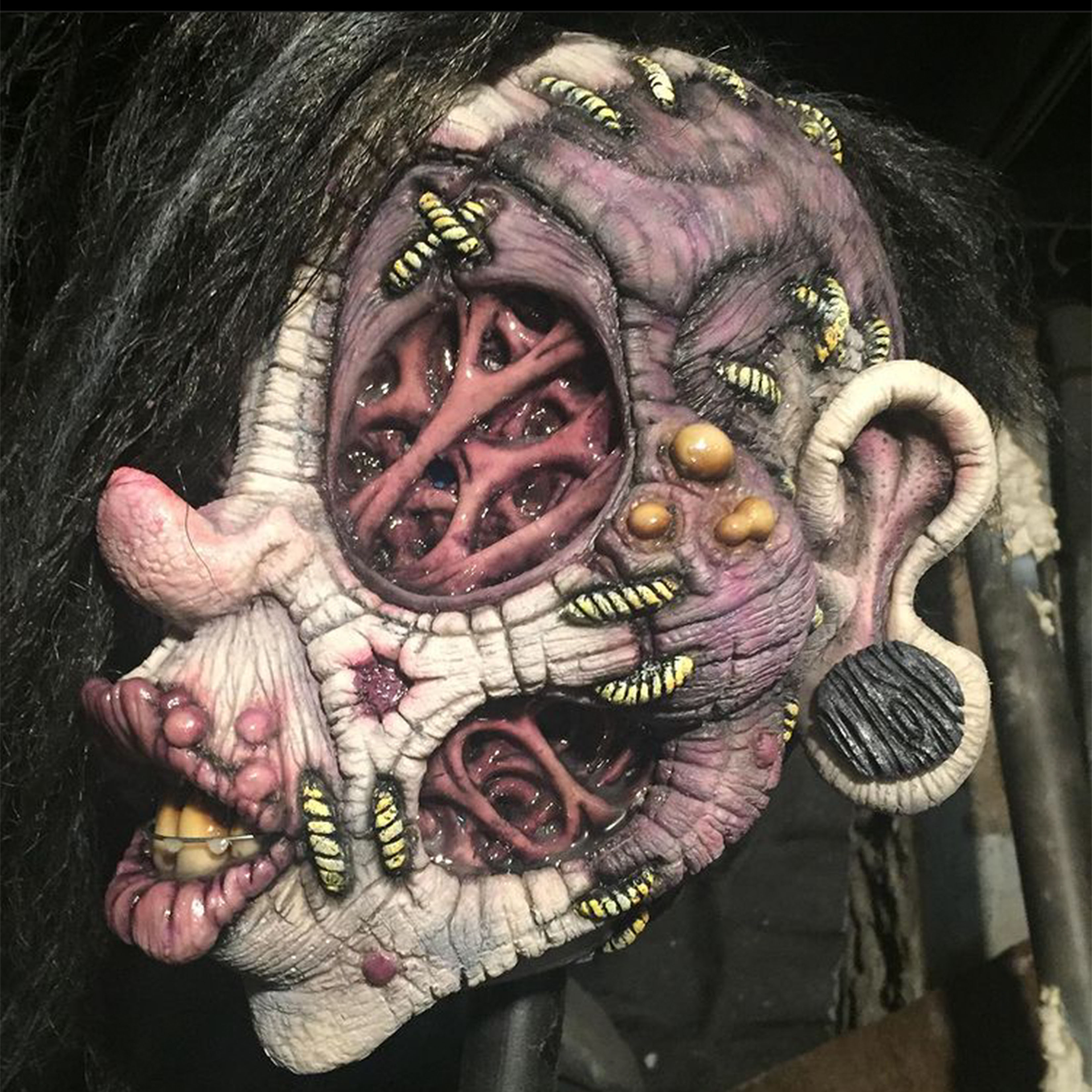 Cousin Candi wearable full head latex masks complete with hand laid hair, resin gauges, epoxied features, made of RD407 latex. Custom paint schemes available no extra charge just specify in your notes your desired paint scheme. Please allow 2-4 weeks for production.
