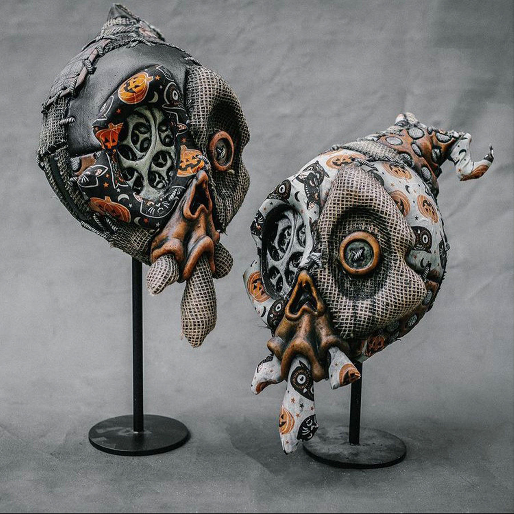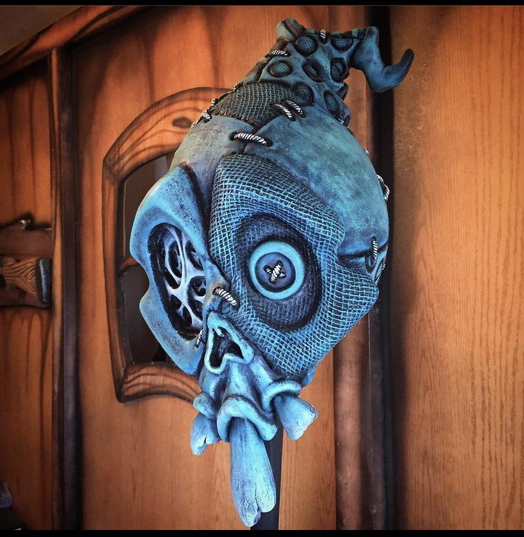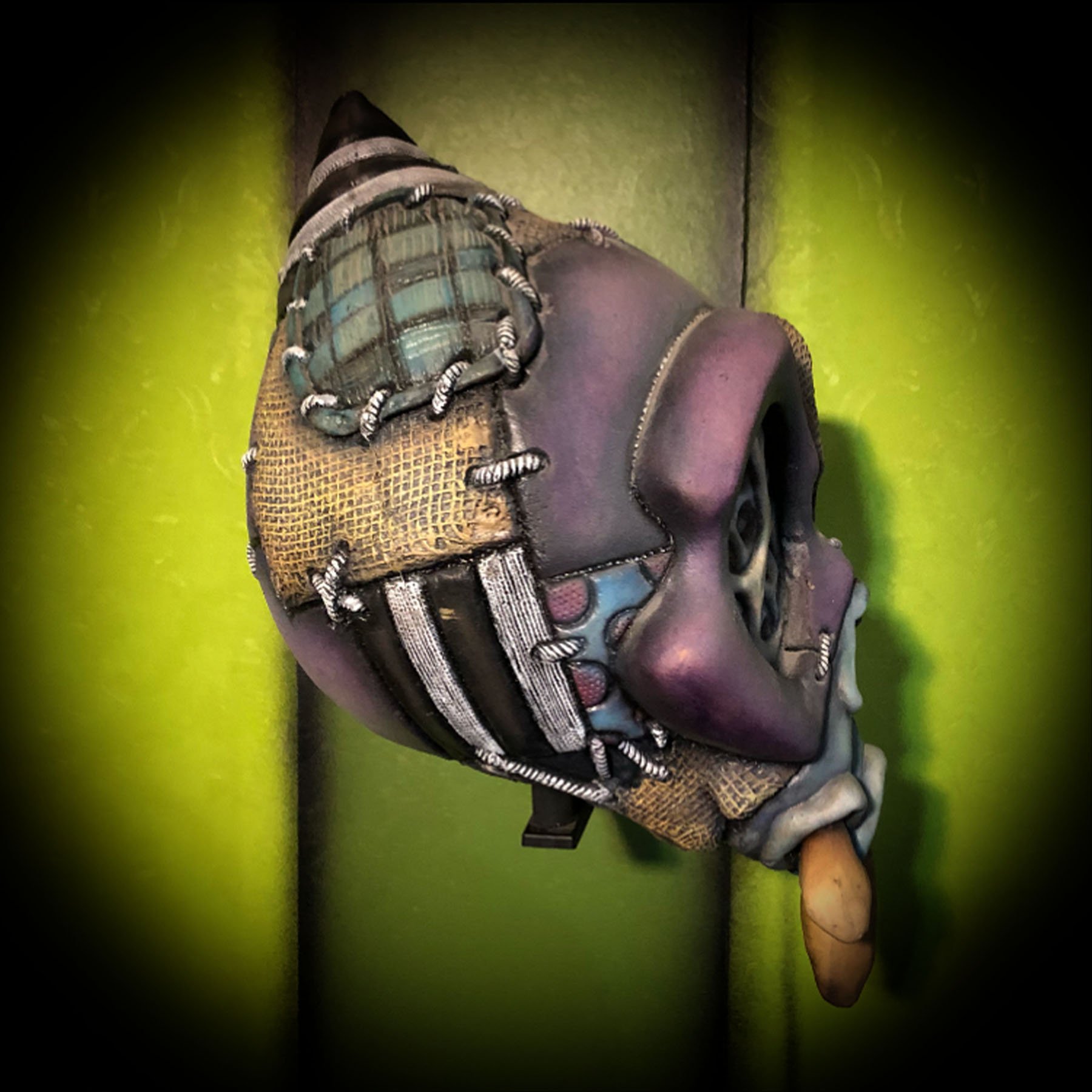 Not much is known about this strange patchwork ghost, but many claim to have seen his eerie green glow illuminating the upstairs windows of the old abandoned shack up on the hill. Full head latex mask made of thick RD407 latex. Custom paint schemes available no extra charge just specify in your notes your desired paint scheme and if the mask is for wearable or display purposes. Deluxe fabric versions available for $350 plus shipping. Please allow 2-4 weeks for production.